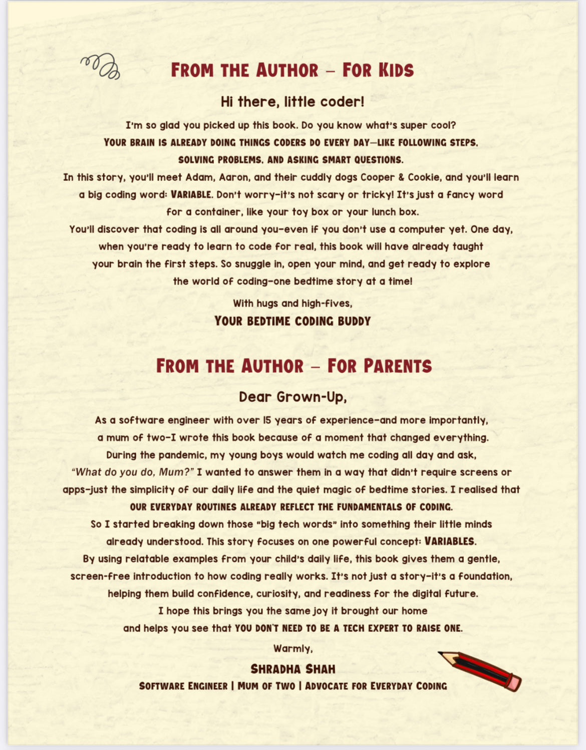 When two brothers, Adam and Aaron, ask their mum - who happens to be a software engineer - what an algorithm is, she shows them that it’s simply a set of steps to get things done. From brushing their teeth to making a sandwich, every routine is an algorithm in disguise!