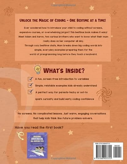 In Variety of Variables All Around You, Adam and Aaron are back with more bedtime curiosity! This time, their mum explains what variables are - those clever placeholders that make computers (and life!) flexible and adaptable.